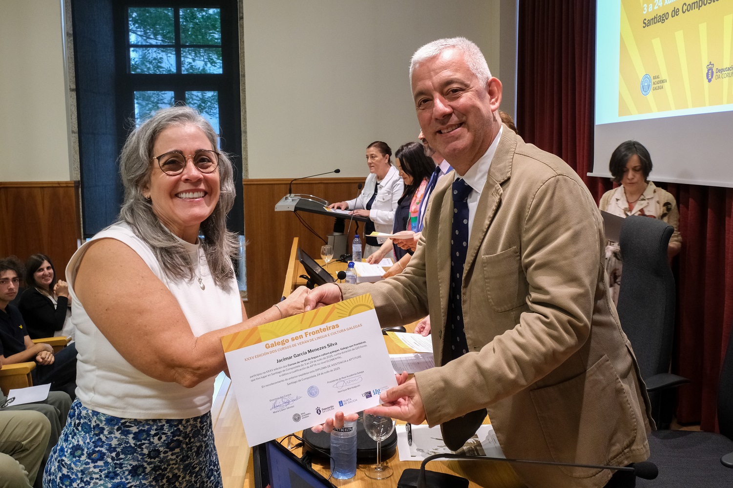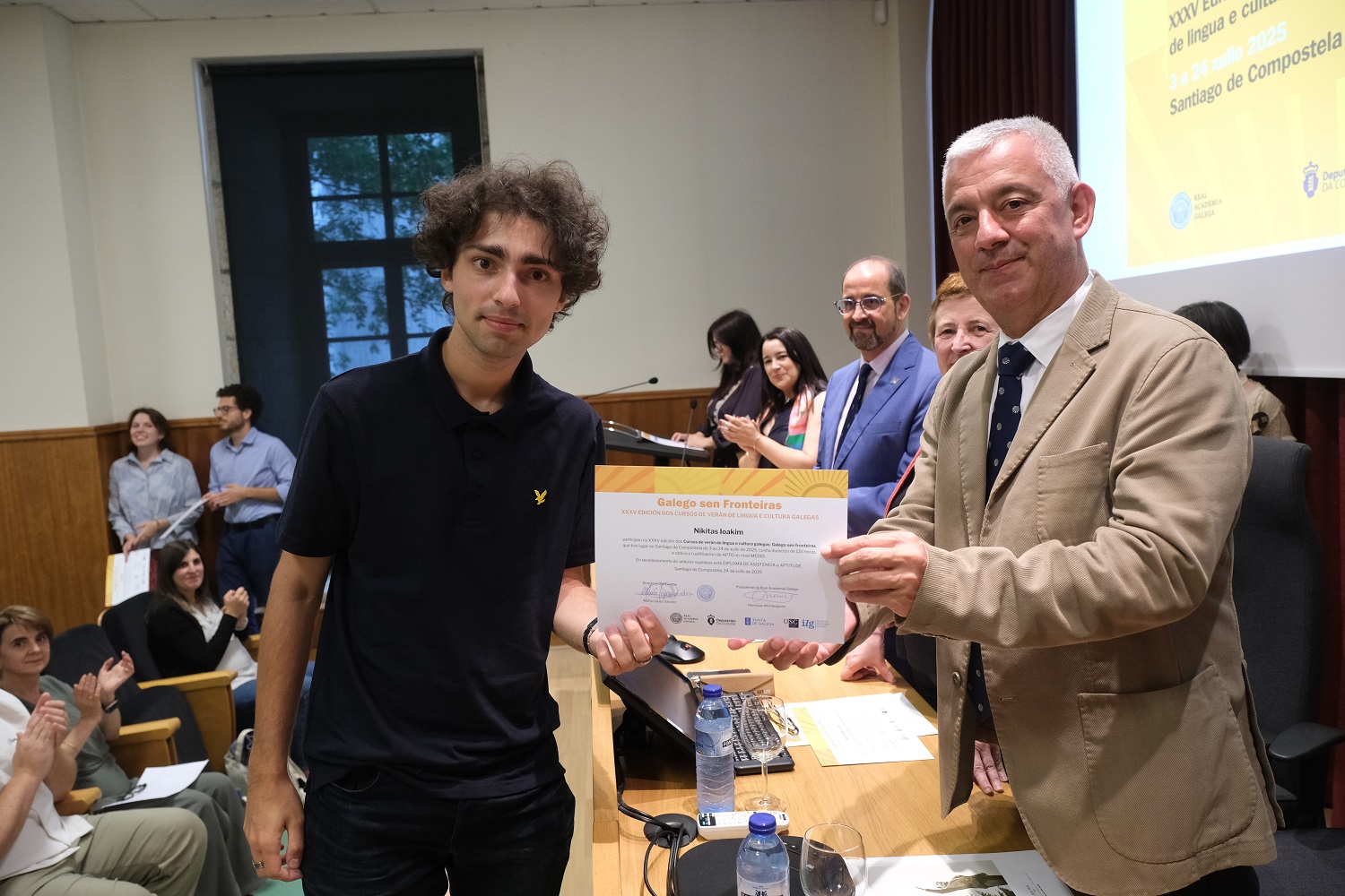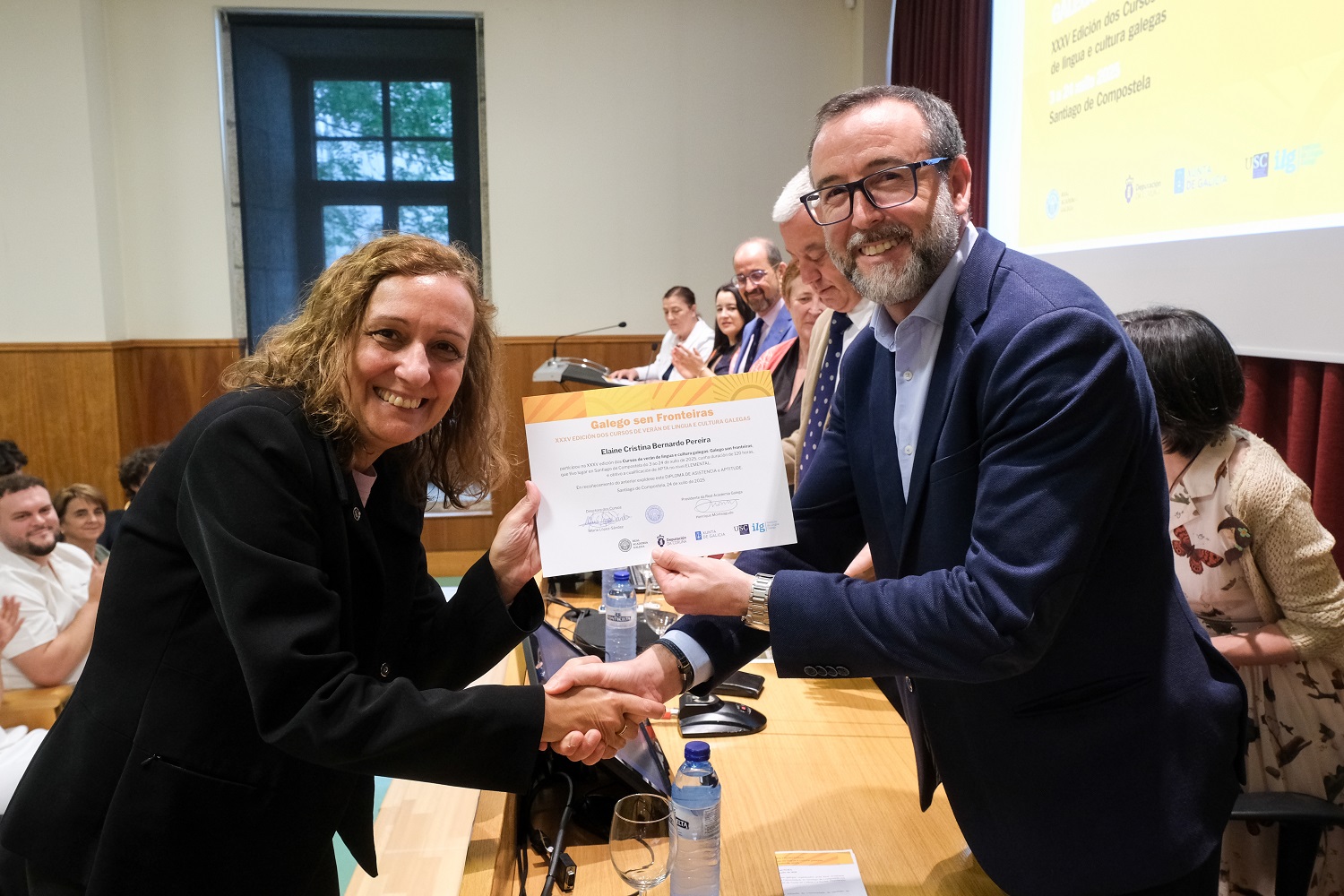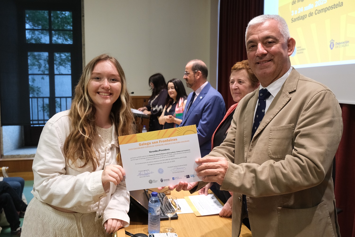 A Real Academia Galega e o Instituto da Lingua Galega da Universidade de Santiago de Compostela clausuraron os cursos que desde 1988 coorganizan no verán compostelán e por cuxas aulas pasaron xa máis de 2.500 estudantes. Henrique Monteagudo interveu no acto de clausura xunto á directora dos Cursos, a académica María López-Sández; a directora do ILG, Elisa Fernández Rei; o secretario xeral da Lingua, Valentín García; e mais o filólogo da RAG Vicente Feijoo, en representación do profesorado.