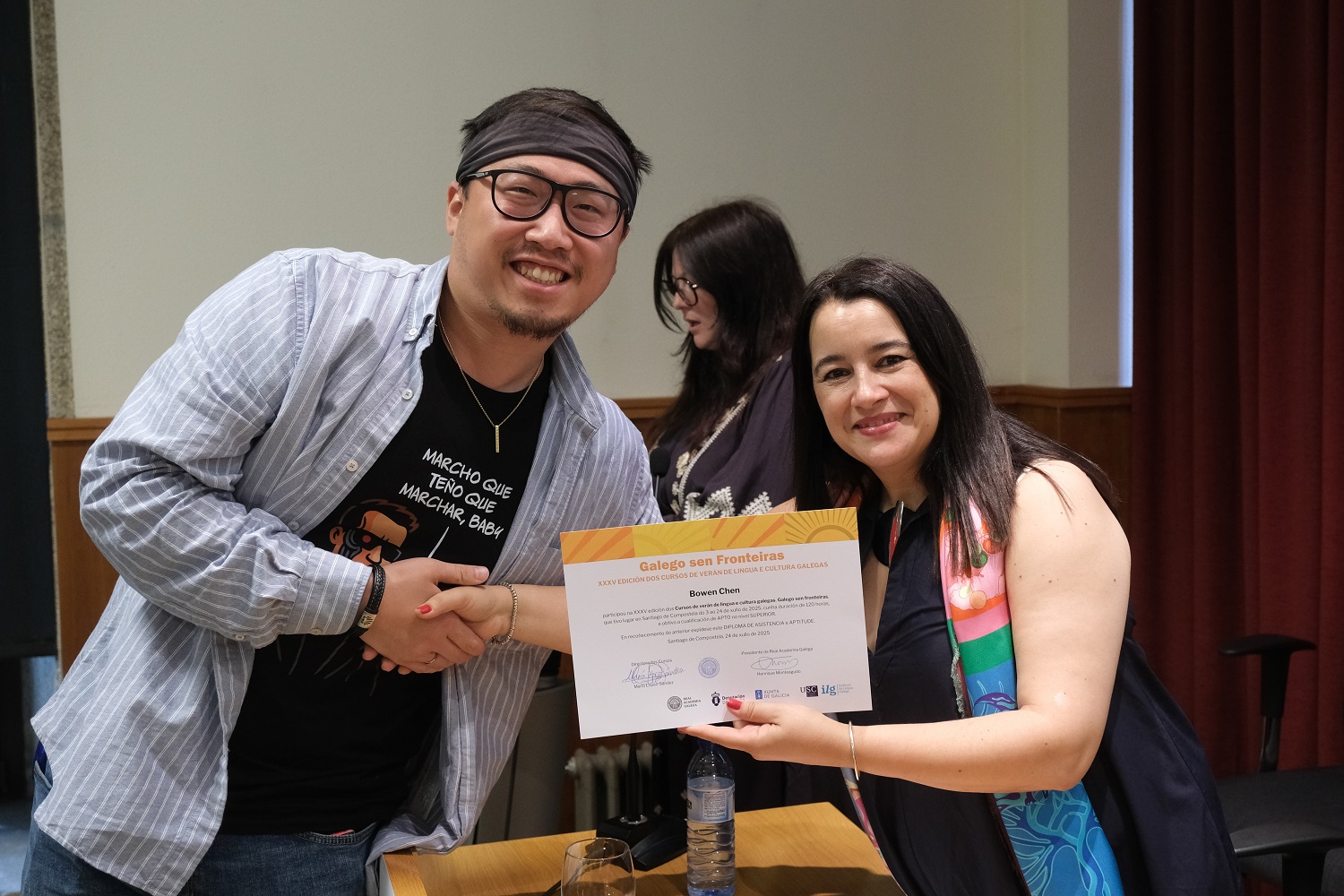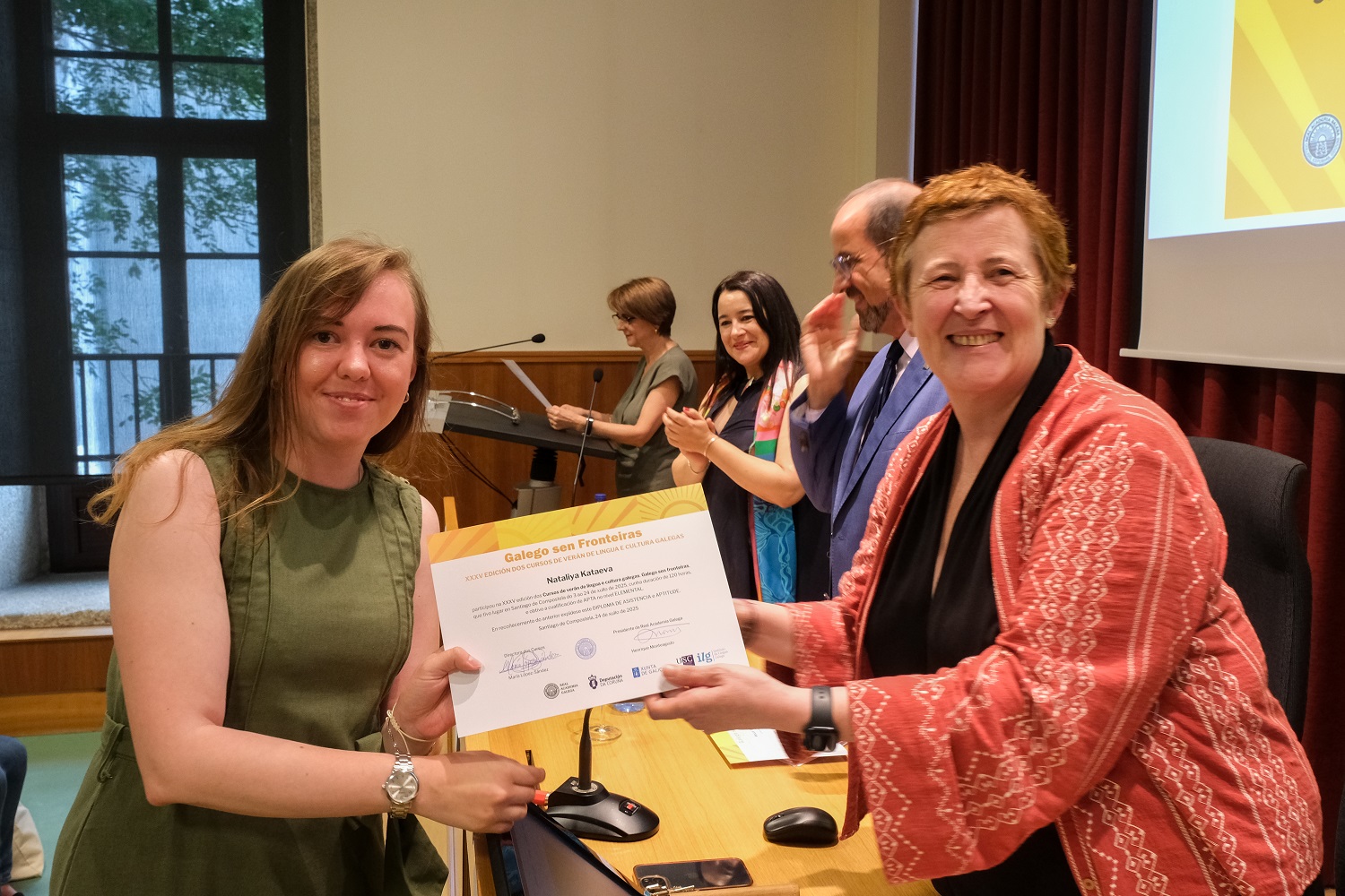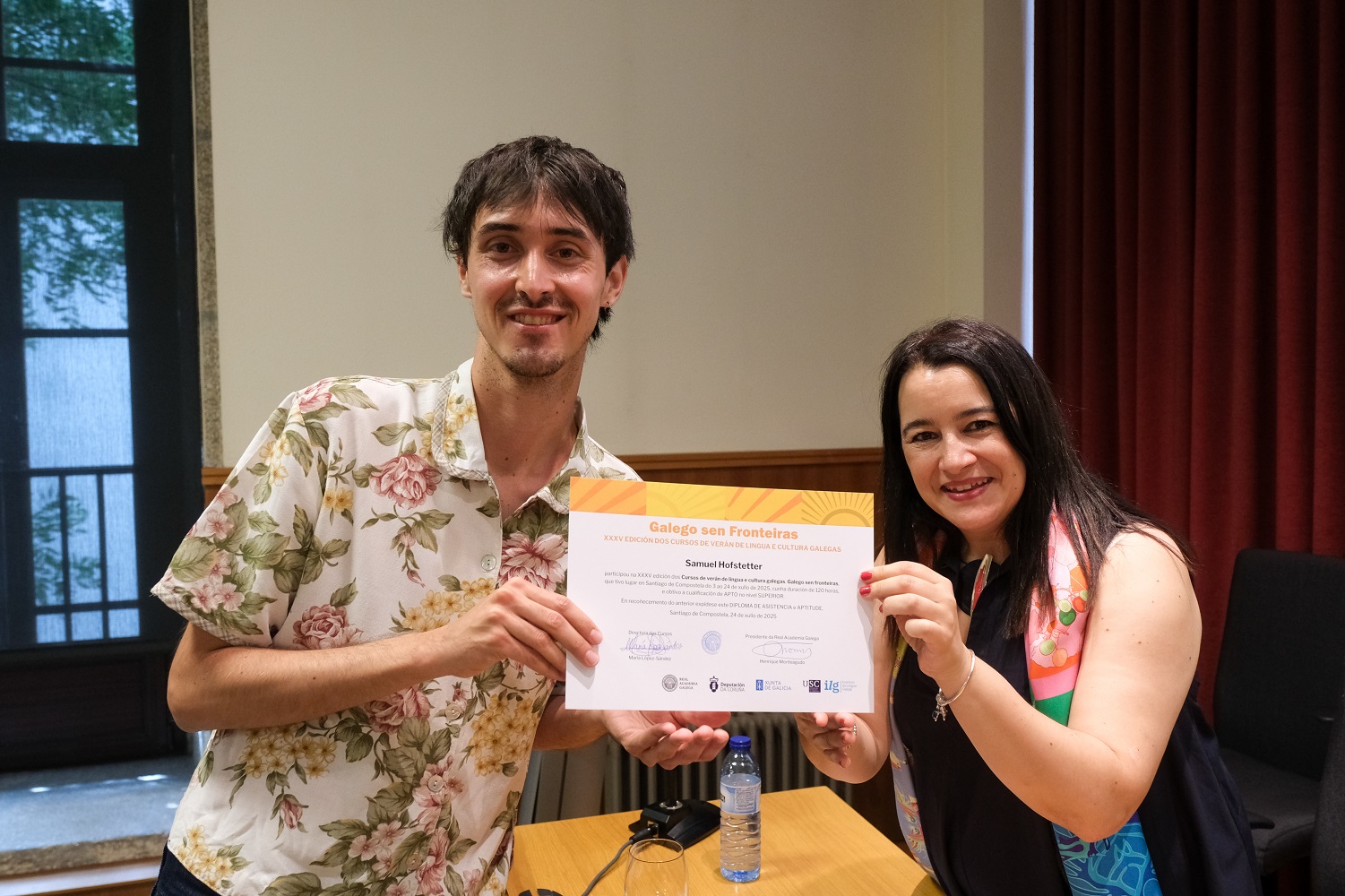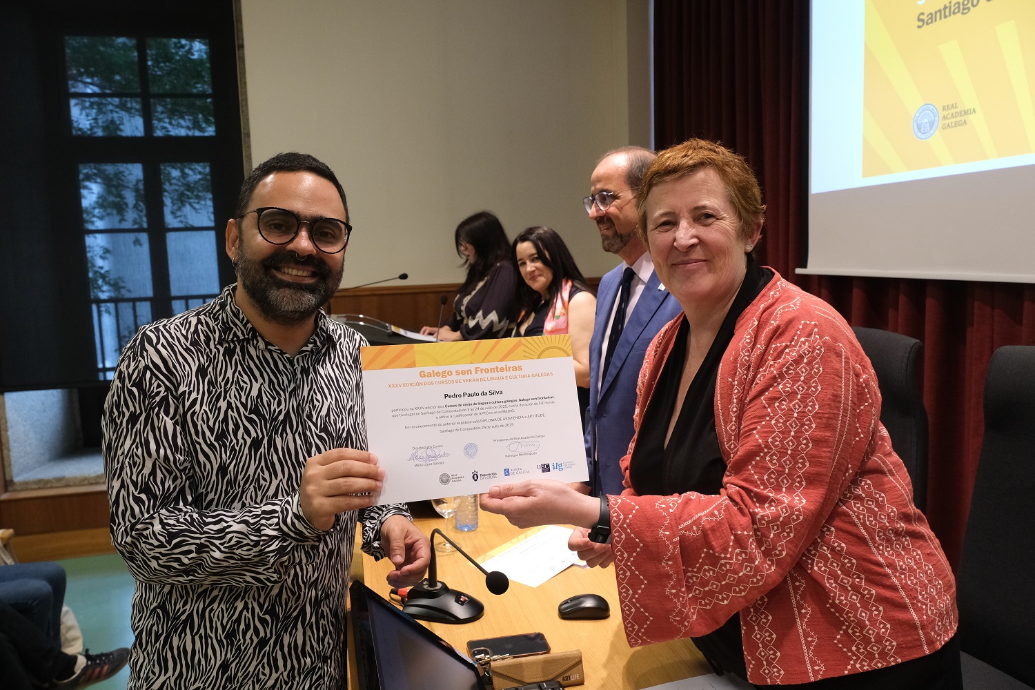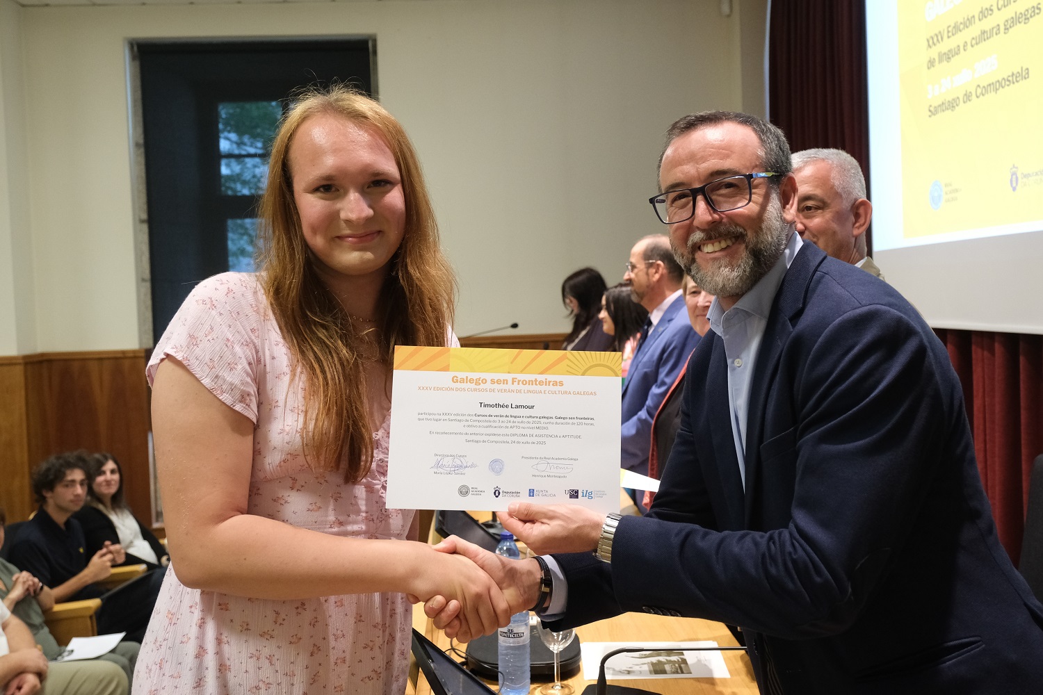 A Real Academia Galega e o Instituto da Lingua Galega da Universidade de Santiago de Compostela clausuraron os cursos que desde 1988 coorganizan no verán compostelán e por cuxas aulas pasaron xa máis de 2.500 estudantes. Henrique Monteagudo interveu no acto de clausura xunto á directora dos Cursos, a académica María López-Sández; a directora do ILG, Elisa Fernández Rei; o secretario xeral da Lingua, Valentín García; e mais o filólogo da RAG Vicente Feijoo, en representación do profesorado.