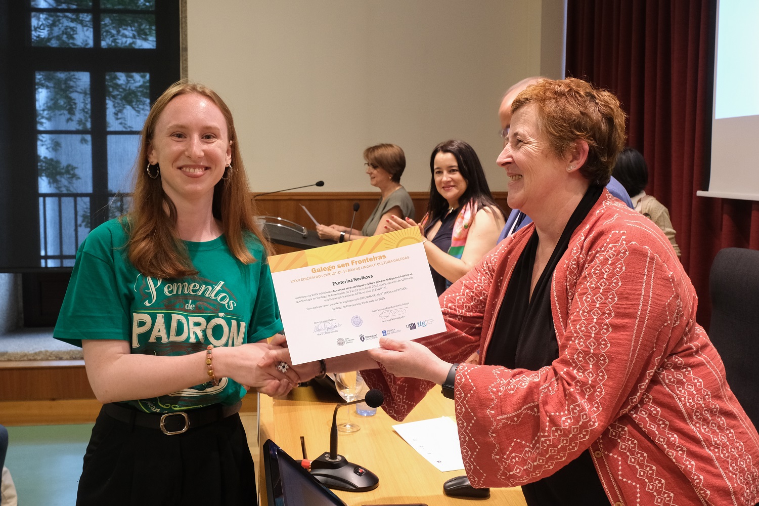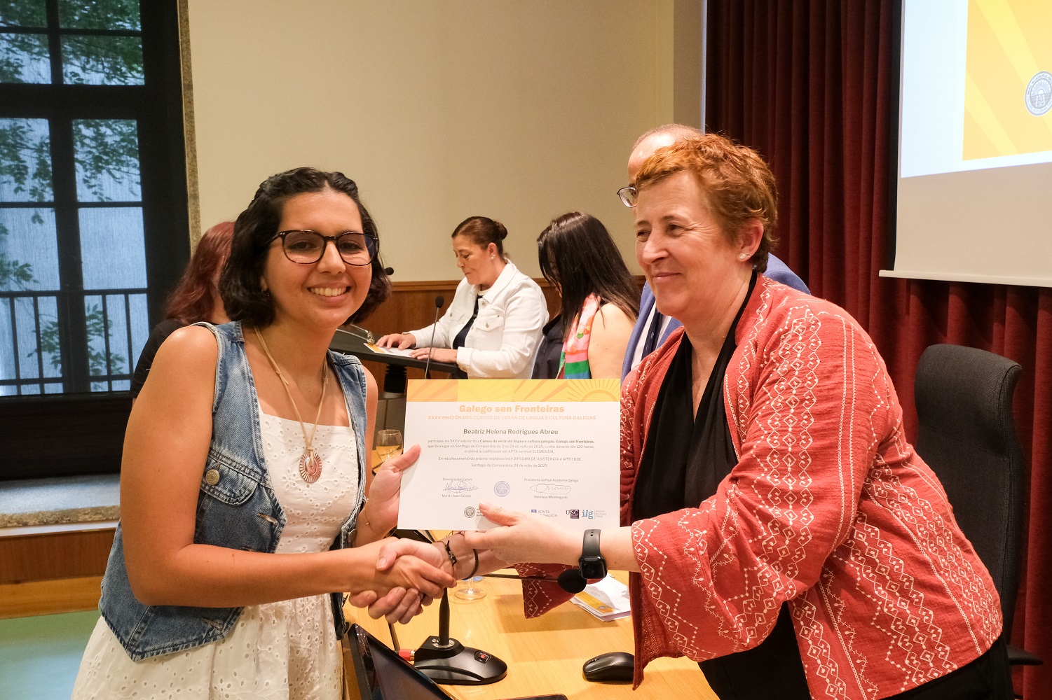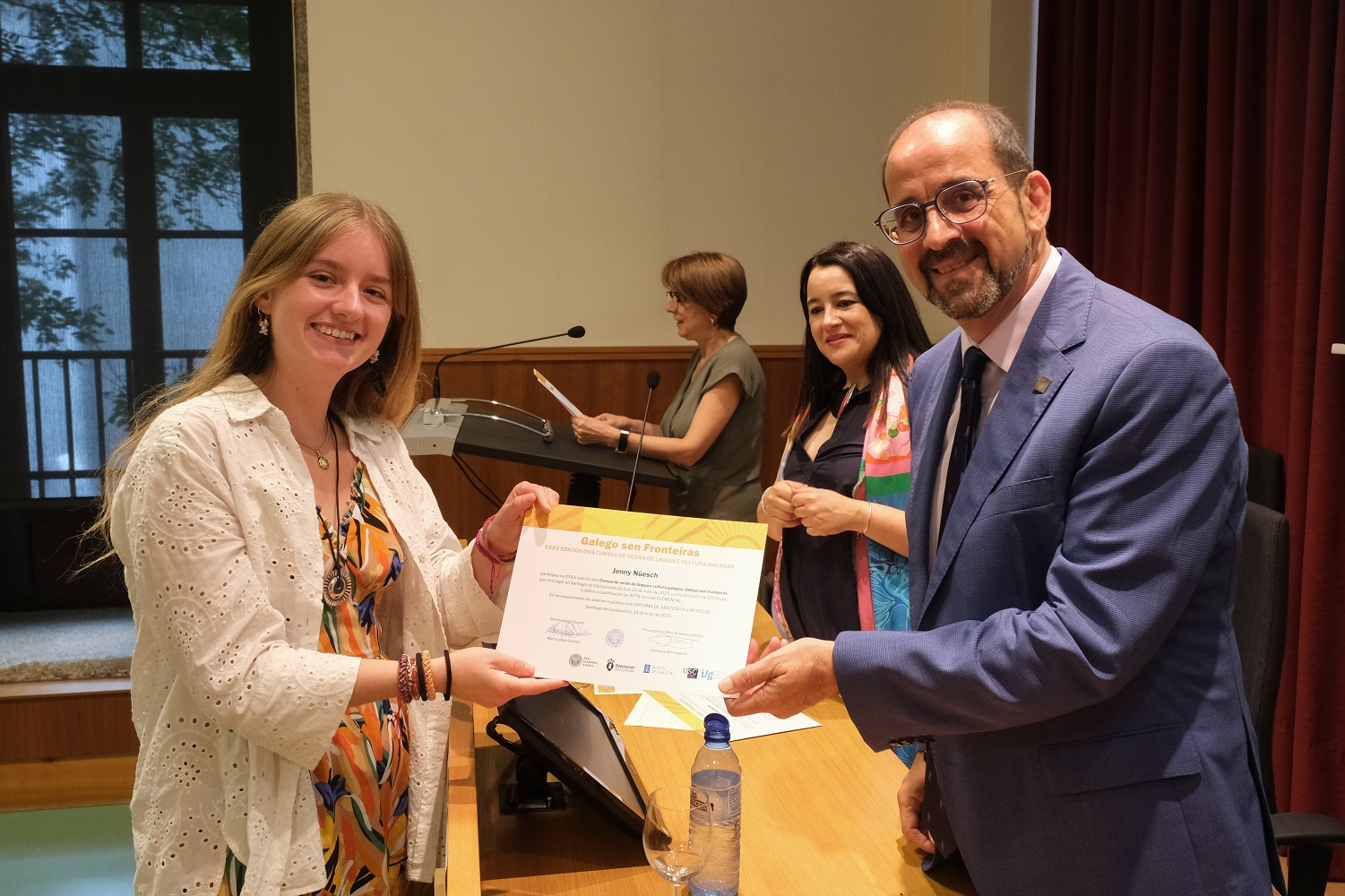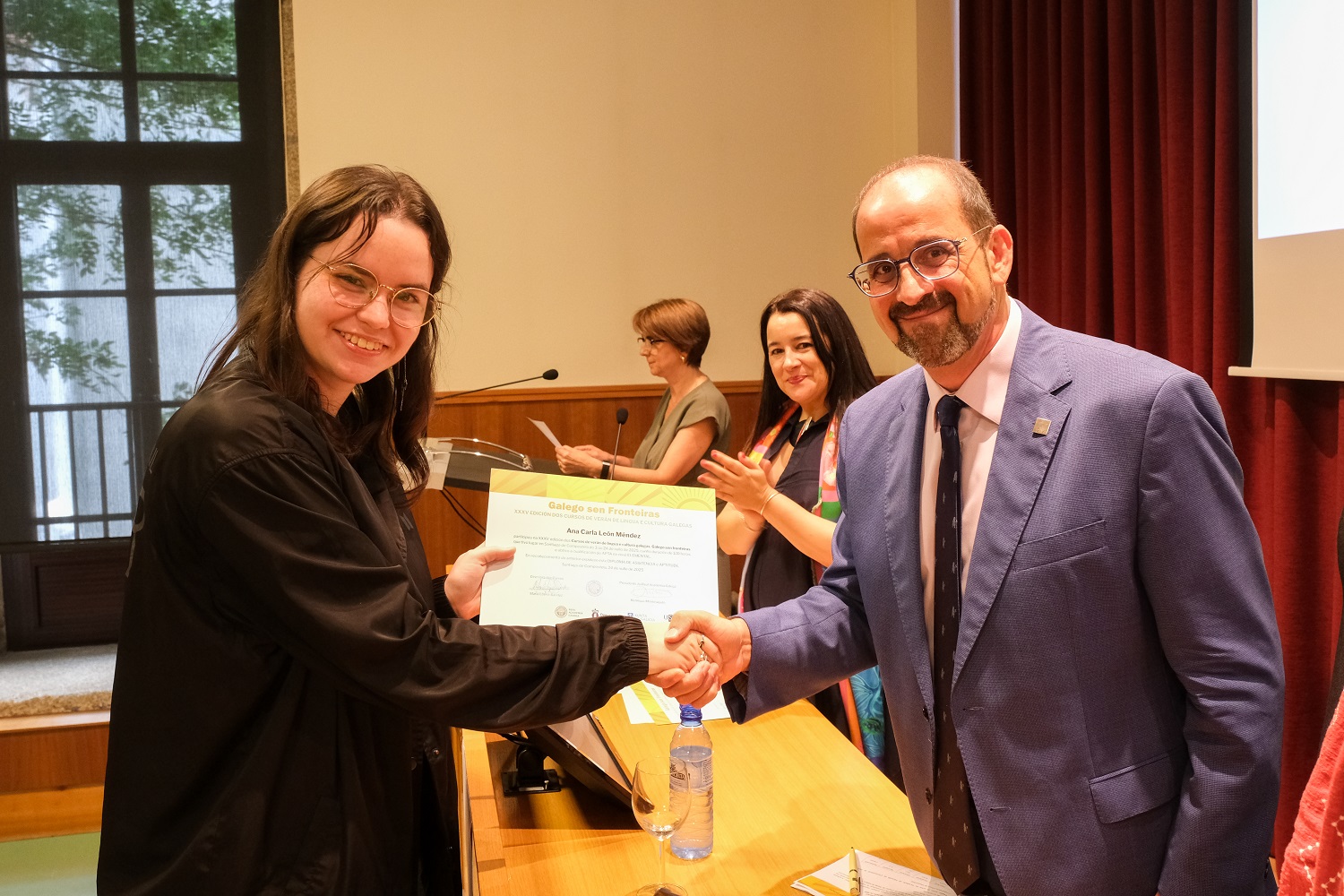 A Real Academia Galega e o Instituto da Lingua Galega da Universidade de Santiago de Compostela clausuraron os cursos que desde 1988 coorganizan no verán compostelán e por cuxas aulas pasaron xa máis de 2.500 estudantes. Henrique Monteagudo interveu no acto de clausura xunto á directora dos Cursos, a académica María López-Sández; a directora do ILG, Elisa Fernández Rei; o secretario xeral da Lingua, Valentín García; e mais o filólogo da RAG Vicente Feijoo, en representación do profesorado.
