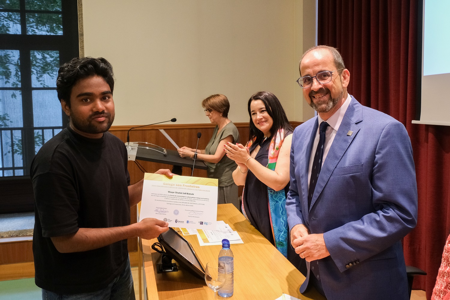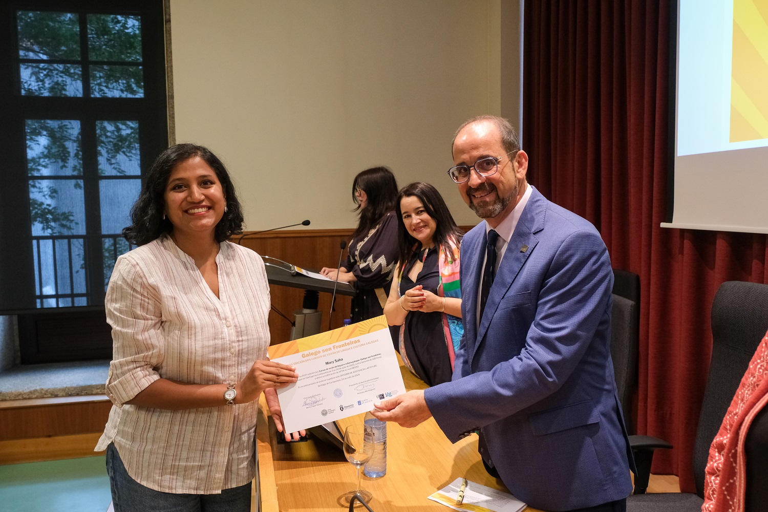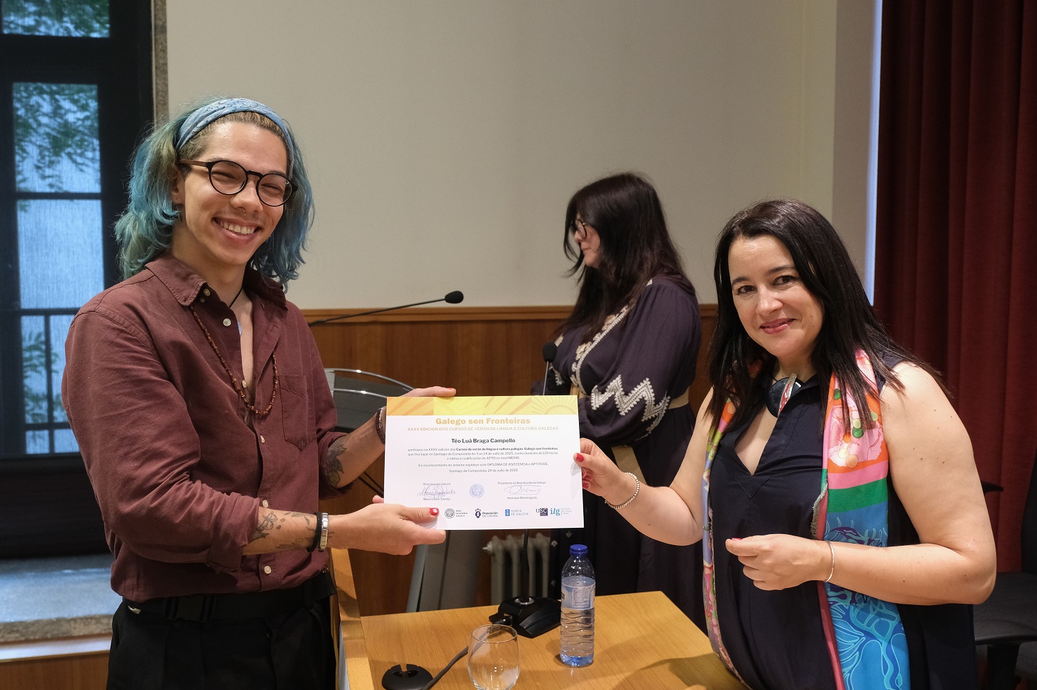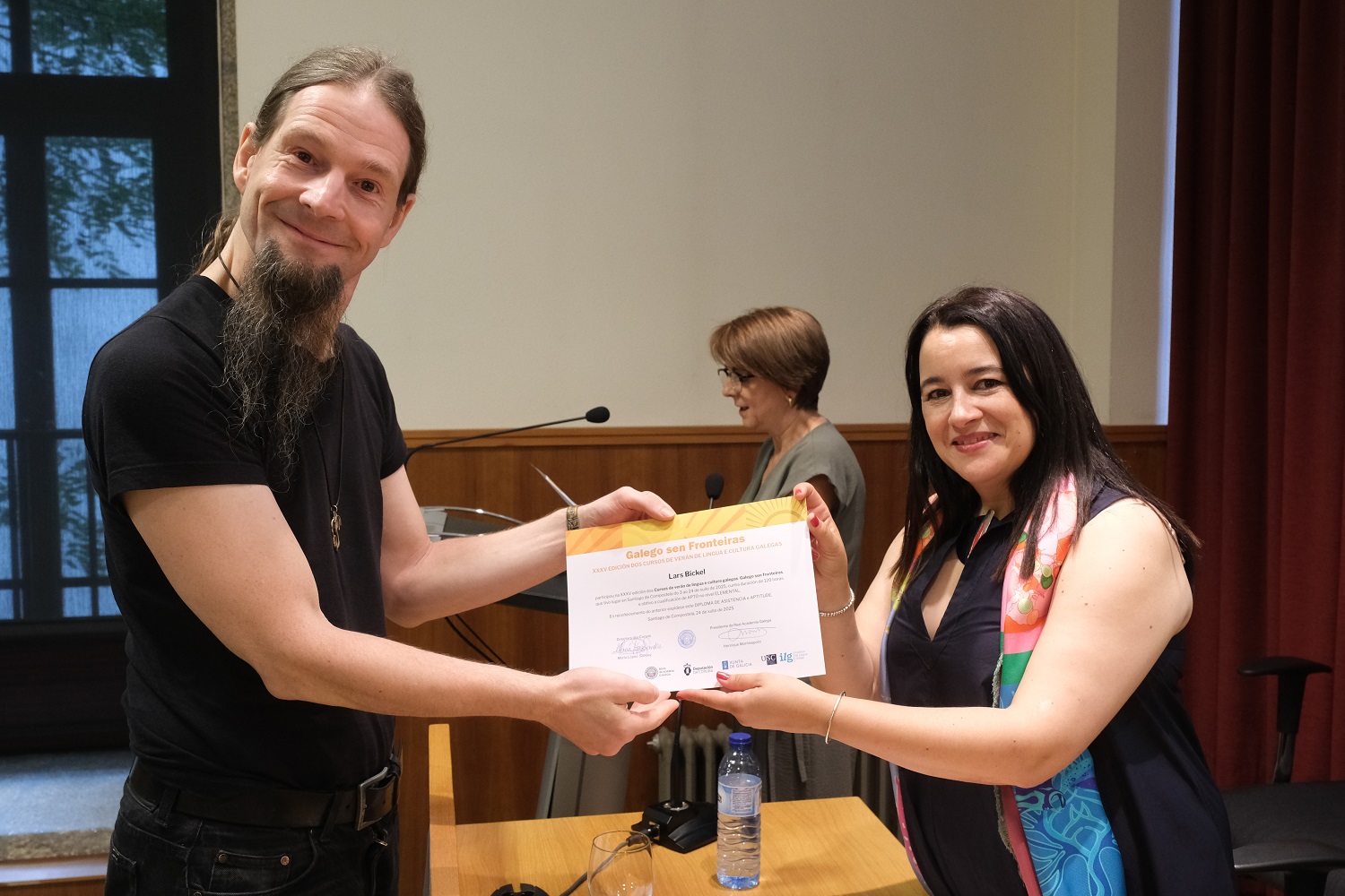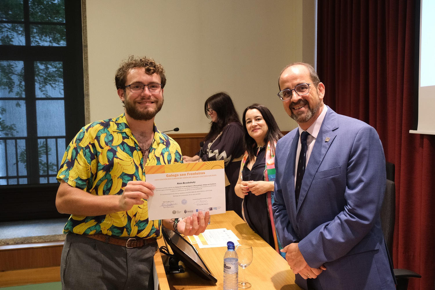 A Real Academia Galega e o Instituto da Lingua Galega da Universidade de Santiago de Compostela clausuraron os cursos que desde 1988 coorganizan no verán compostelán e por cuxas aulas pasaron xa máis de 2.500 estudantes. Henrique Monteagudo interveu no acto de clausura xunto á directora dos Cursos, a académica María López-Sández; a directora do ILG, Elisa Fernández Rei; o secretario xeral da Lingua, Valentín García; e mais o filólogo da RAG Vicente Feijoo, en representación do profesorado.